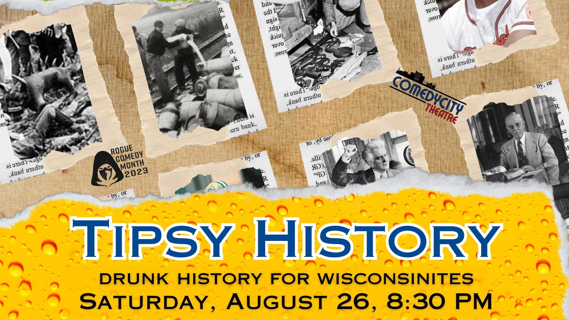 Get ready for a hilariously tipsy journey through Wisconsin's history at "Tipsy History," an unscripted improv show presented as part of ComedyCity Theatre's Rogue Comedy Month. Witness as the talented ComedyCity players re-tell historical stories of the Badger State while some performers get progressively drunker as the night unfolds, adding a hilarious twist to the narrative. With a blend of comedy and historical re-enactments, "Tipsy History"