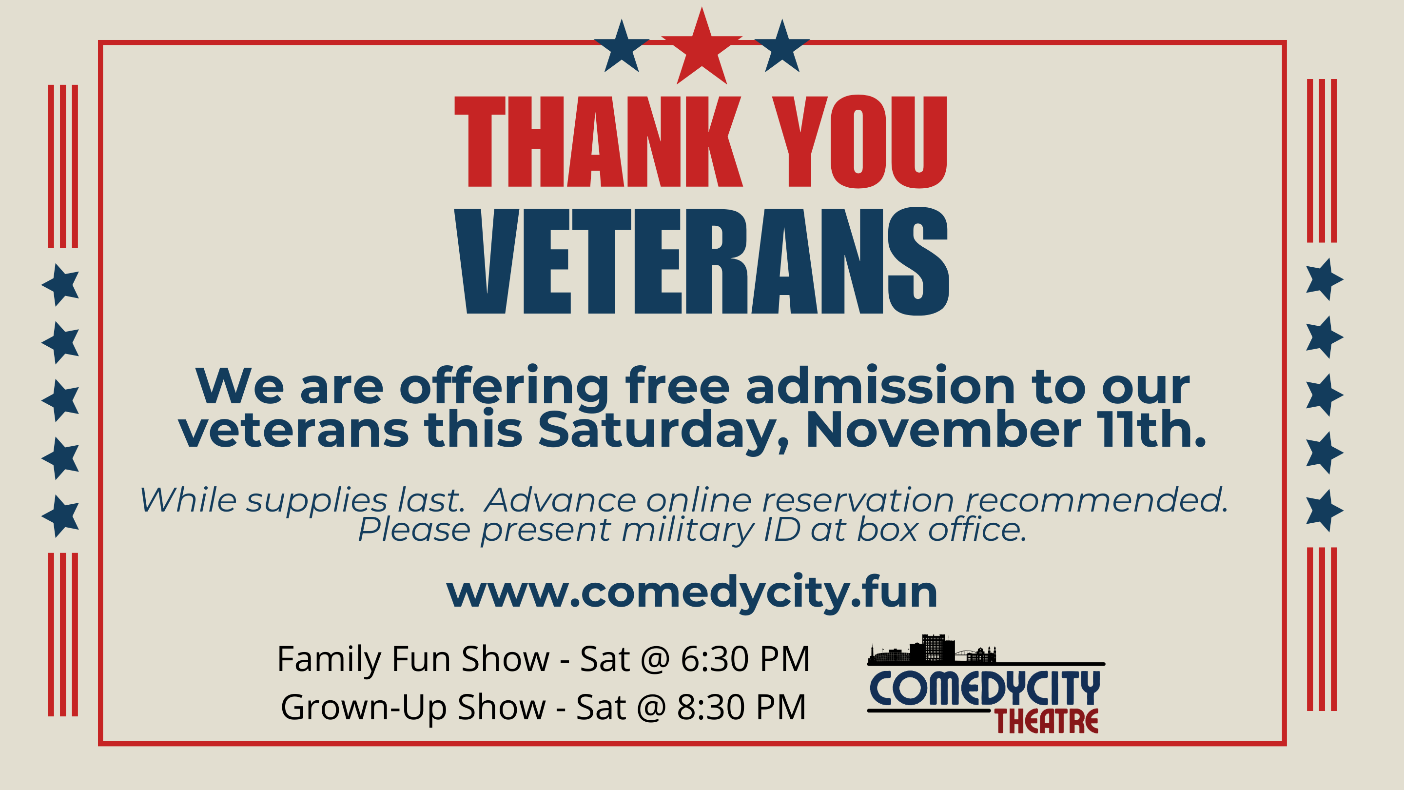 Thank you, veterans! Â Enjoy a show on us!