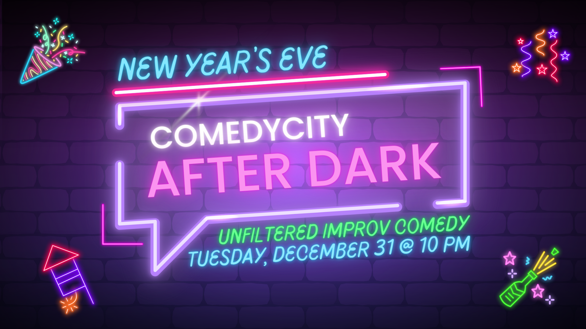 putting on three shows meant to get you laughing before the ball drops. The early shows are sold out, but there are still tickets available for our 10 PM "After Dark" show! The show will run until approximately 11:45 when we will wrap things up and get ready to countdown to midnight with you. You can make the evening more special by purchasing a premium ticket that includes a champagne toast!