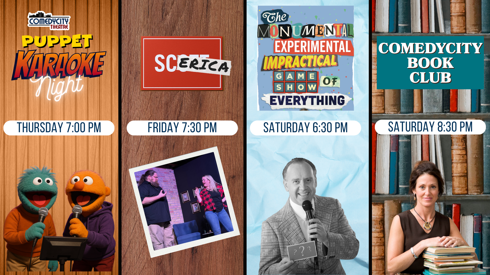 ScErica takes the stage. This dynamic duo—ComedyCity’s own Scott Roemaat and Erica Larsen—combine their wildly different comedic styles into one beautifully chaotic evening of laughter.