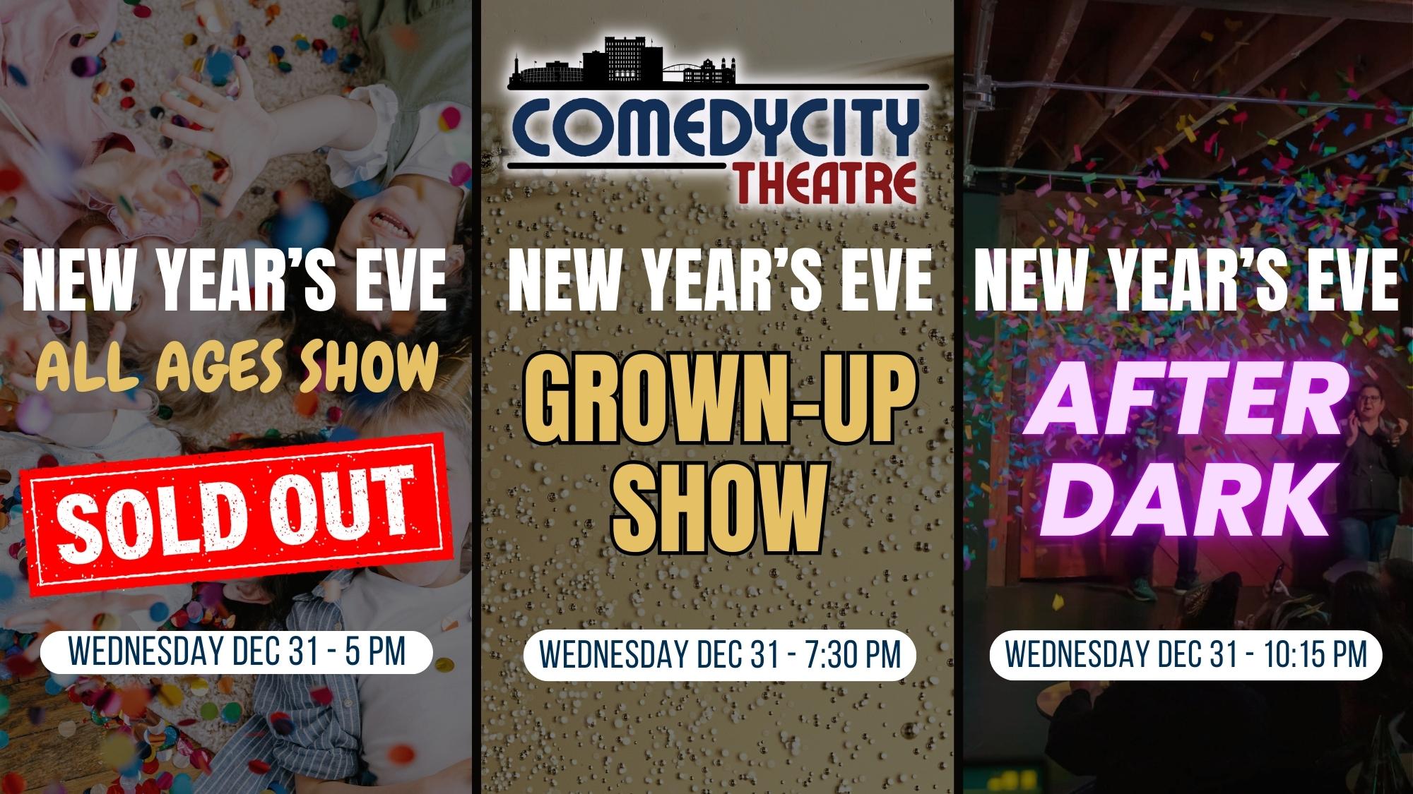 Kick the night off at 7:30 PM with our New Year’s Eve Grown-Up Show, a high-energy improv performance featuring a simulated